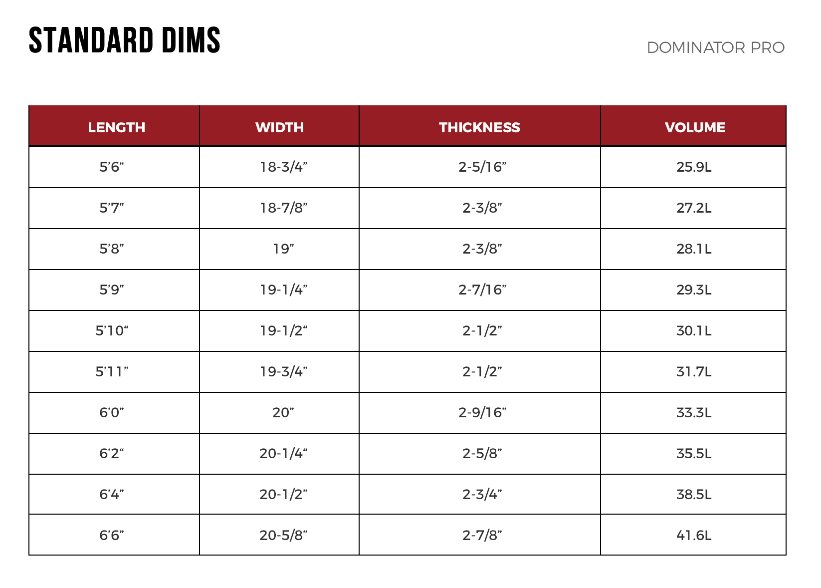 Board DIMS: 5'6" x 18 3/4 x 2 5/16 (25.9L)