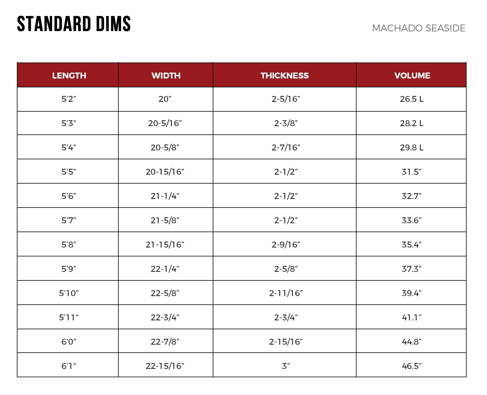If you’re looking for a good Groveler in 1-3’ surf or a fun daily driver in 3-6’ surf with a fresh performance vibe in a fish package, then look no further. The Seaside is very versatile in wave range and fin options, coupled with Firewire’s Helium Technology, is very lively under foot and next level durability.