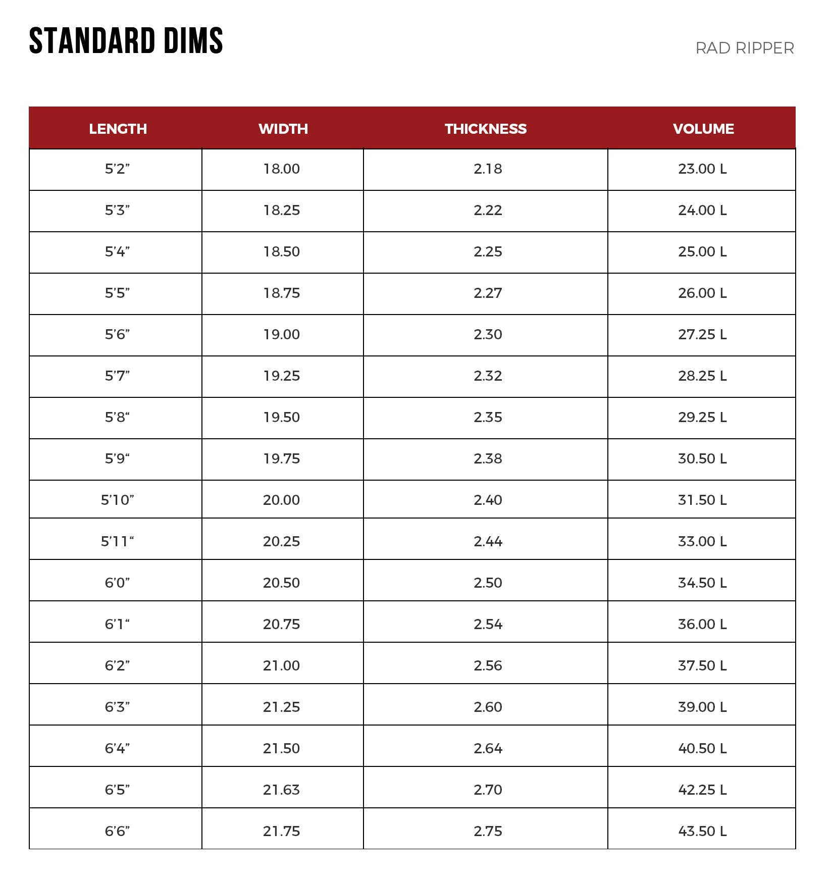 5’5” x 18.75 x 2.27 Liters 26