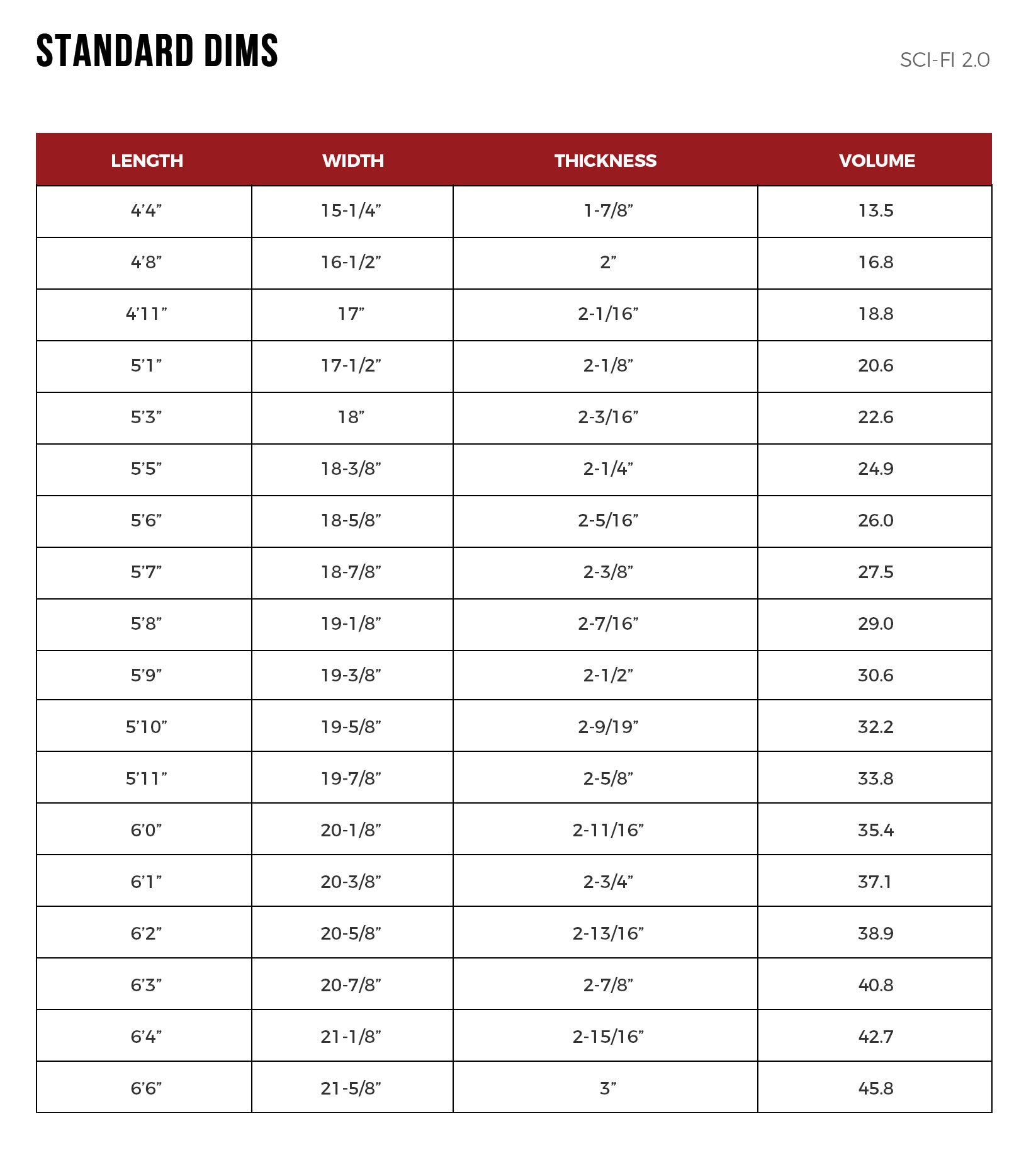 After reviewing a stock 5’6” and 5’5” in this review I liked the 5’6” better due to 1” more rail line to increase drive through turns and the extra float did not hinder performance or agility in tight transitions. If you are stuck choosing between two stock sizes…. I suggest the bigger one. The changes made in the Sci-Fi 2.0 make it very responsive and user friendly and the extra foam is your friend on this model.