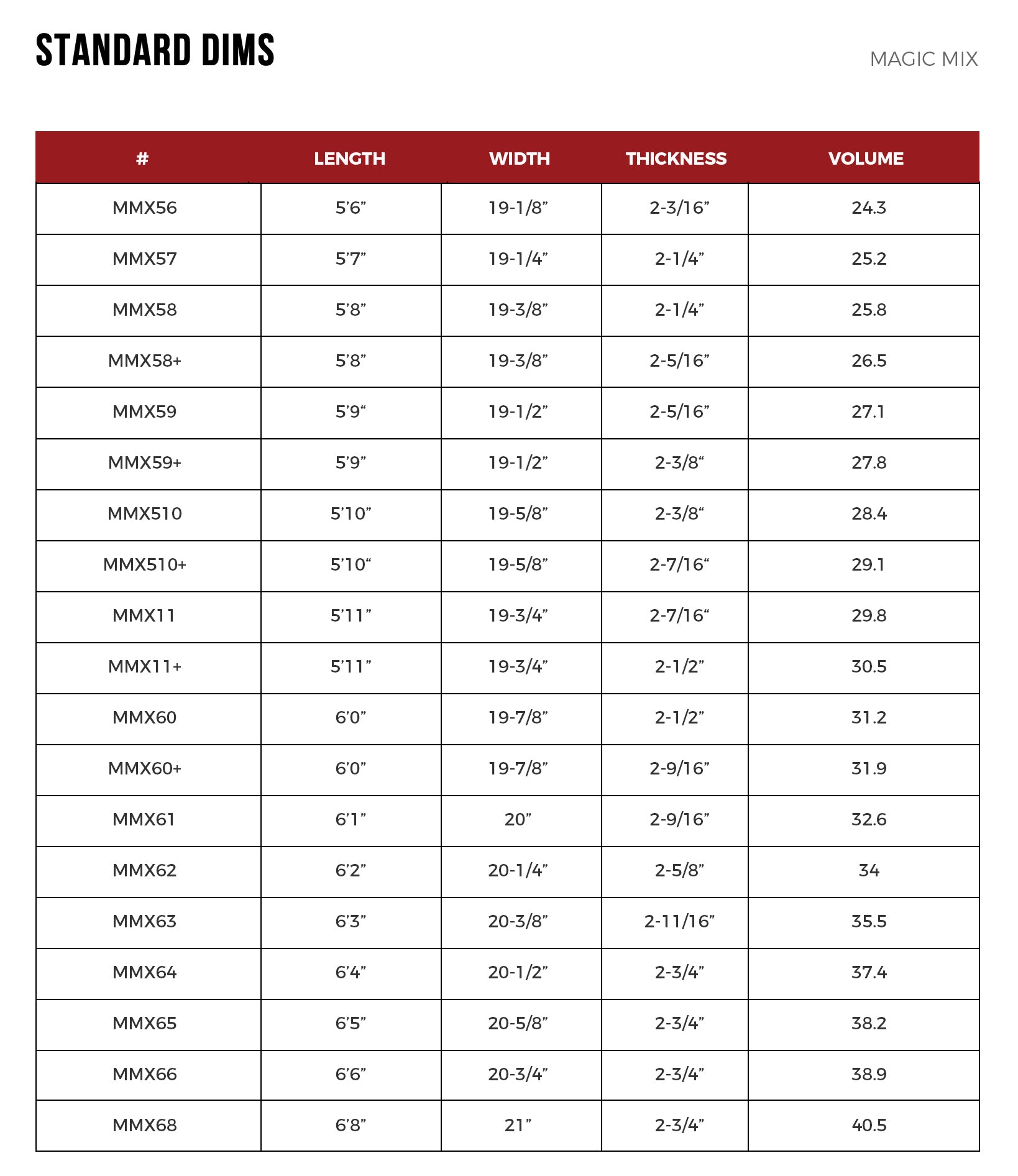 The "Magic Mix" is a mix between The Toy (small wave Groveler) and the Vapors model (Daily Driver) which is the perfect balance between the two for a wave range of 2-6.